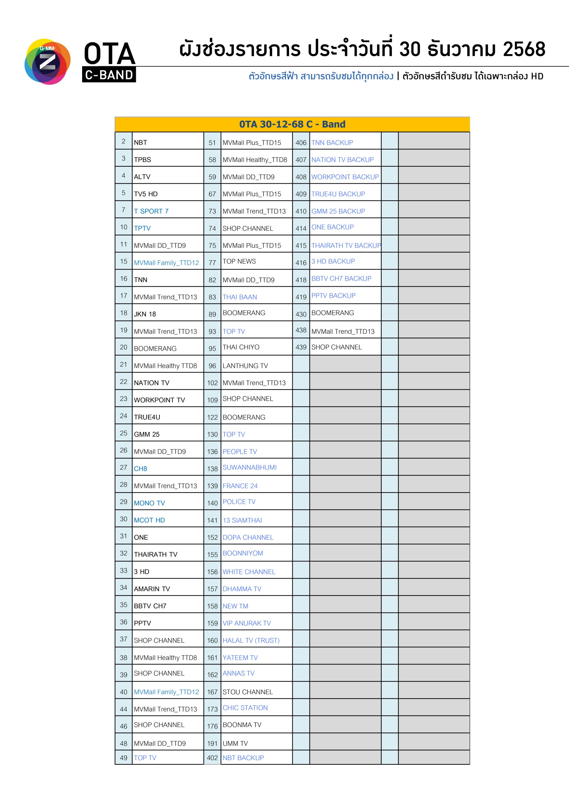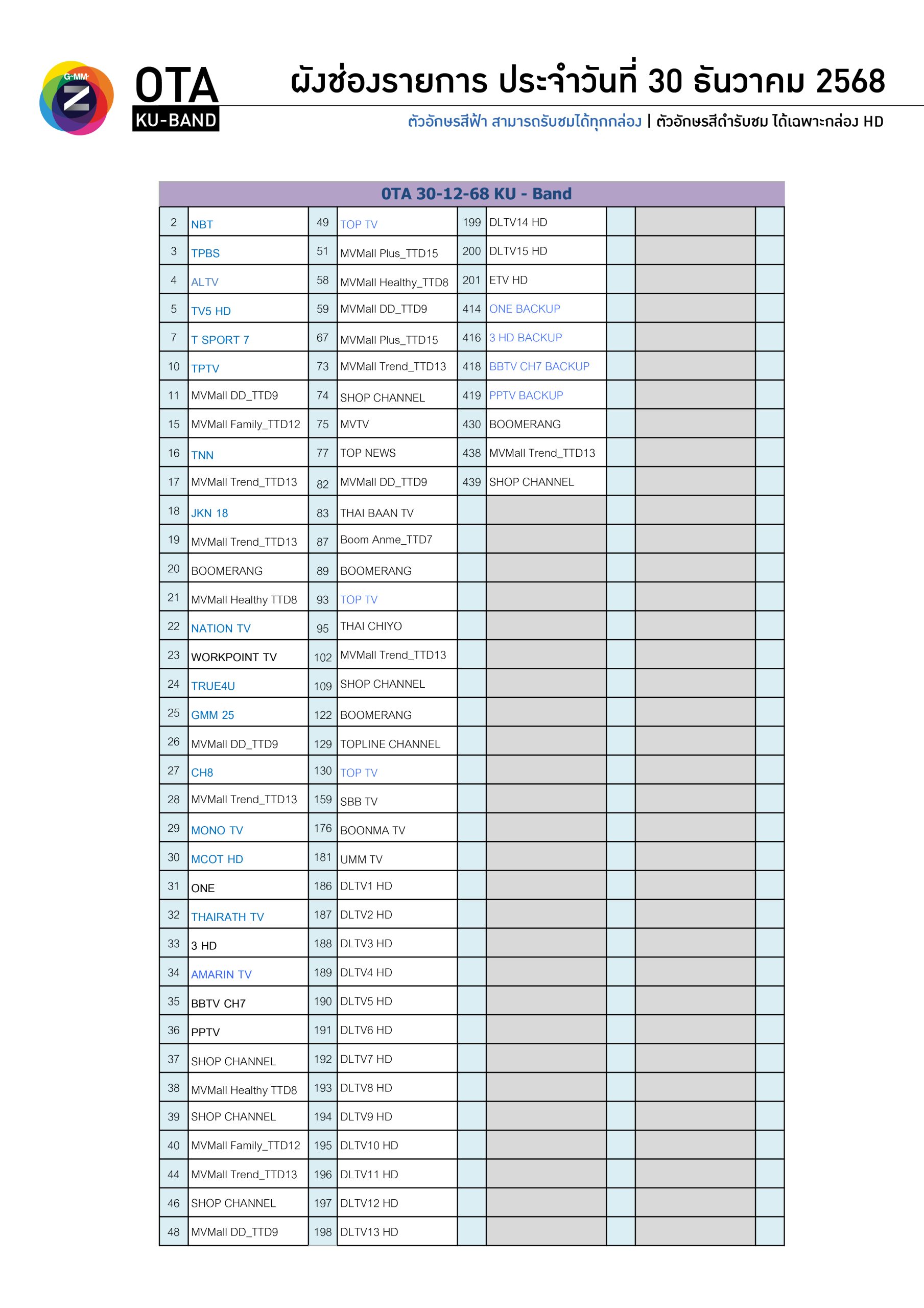 *สีฟ้าสามารถรับชมได้ทุกกล่อง